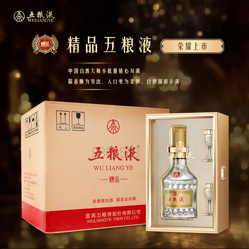 五粮液 精品五粮液 浓香型白酒 52度 500mL*4盒 整箱装 礼盒装 送礼佳选价格:6796.00元!