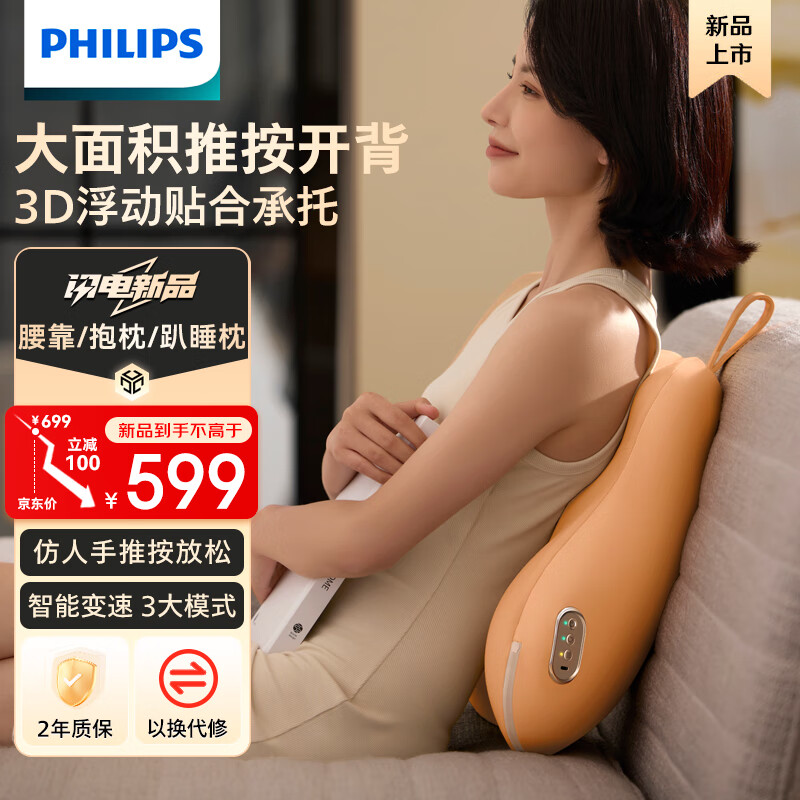 飞利浦(PHILIPS)腰部按摩器 办公室按摩靠枕 肩腿背部按摩仪器揉捏热敷便携轻薄款 5102B 生日礼物礼品送男女朋友价格:679.00元!
