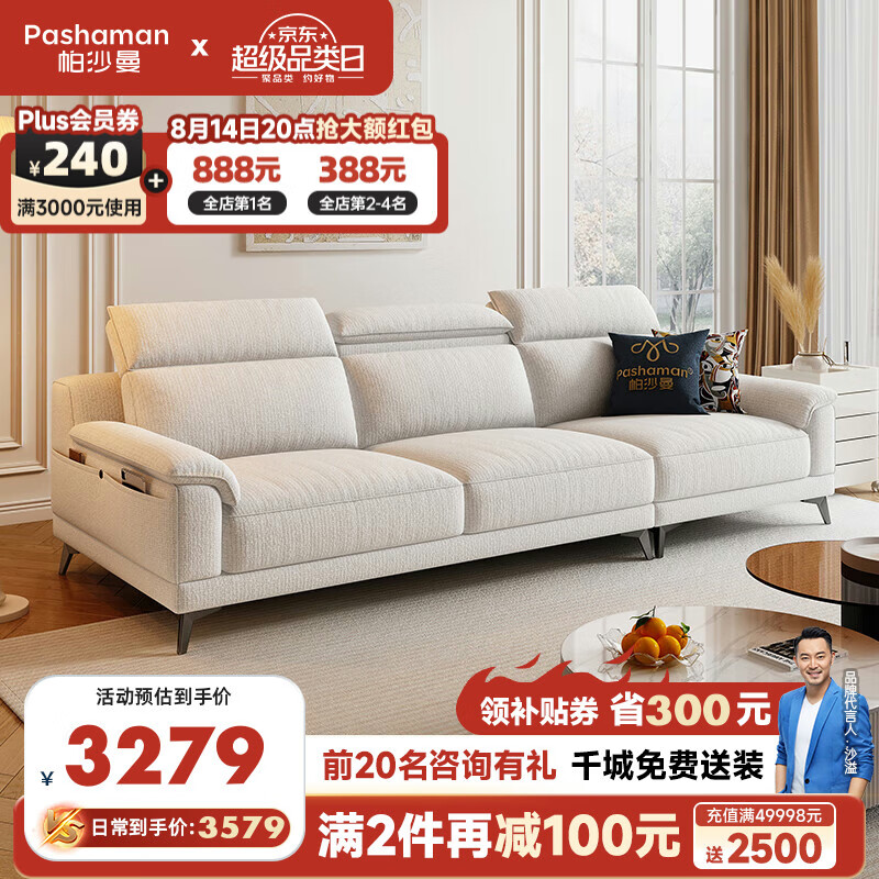 帕沙曼(pashaman)布艺沙发 客厅小户型现代简约棉麻沙发高靠背直排3.1米 2430ZF价格:7158.00元!