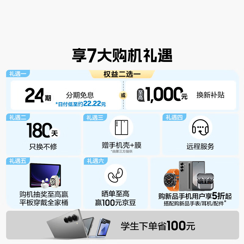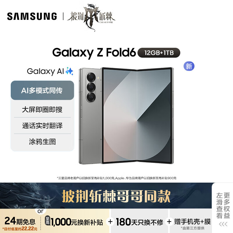 三星(SAMSUNG)Galaxy Z Fold6 大屏AI手机 超轻薄折叠屏手机 披荆斩棘哥哥同款 游戏手机 12GB+1TB 星夜银价格:15999.00元!