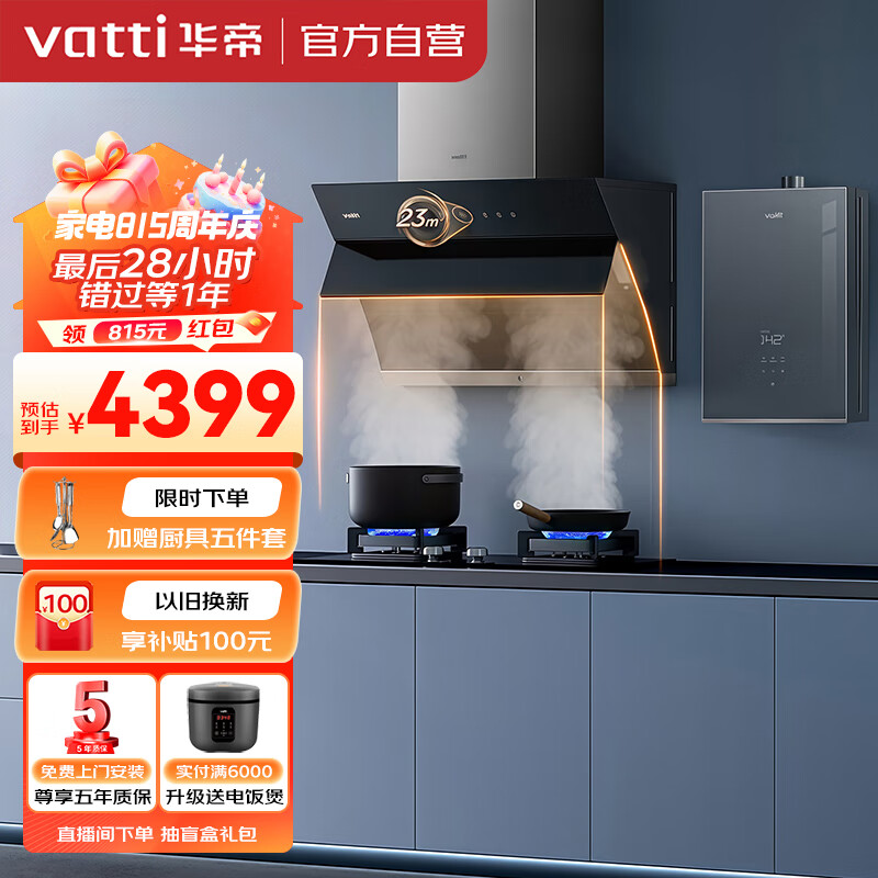 华帝(VATTI)16L水伺服恒温燃热23风量侧吸油烟机5.0kW燃气灶多件套装i11170+72B+152-16(天然气)价格:4399.00元!