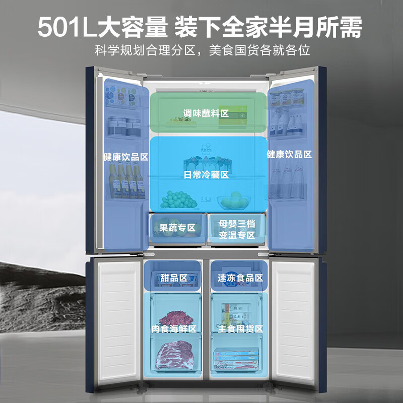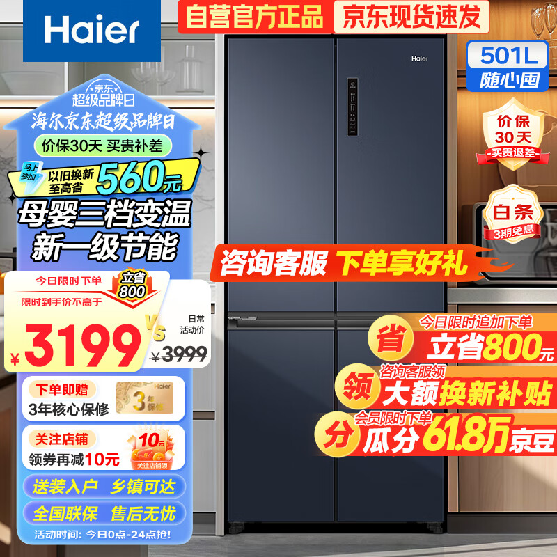 海尔(Haier)【新品】501升四开门一级能效双变频双循环风冷无霜十字对开门双开门多门家用超薄大容量电冰箱价格:3999.00元!