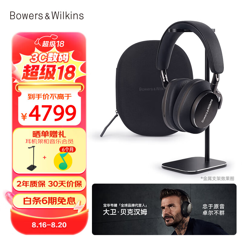 宝华韦健 Px8 无线hifi头戴式蓝牙耳机 B&W智能主动降噪高保真运动音乐耳麦长续航 【贝克汉姆代言】曜石黑价格:4799.00元!