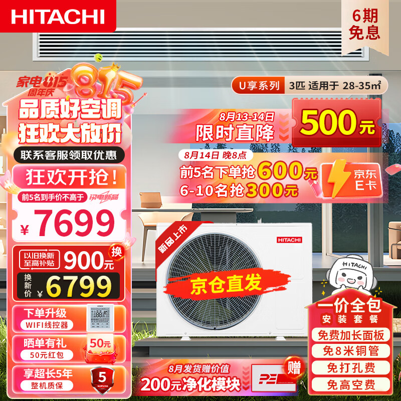 日立(HITACHI)中央空调风管机一拖一U享3匹家用嵌入式空调一价全包1级能效冷暖全直流变频京仓发货RPIZ-72HDQ1/P价格:8299.00元!