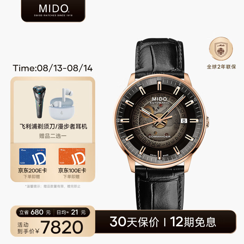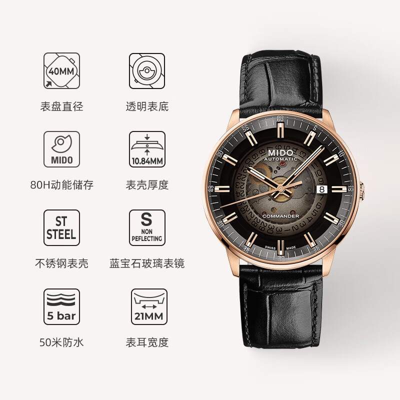 美度(MIDO)瑞士手表 指挥官 幻影款 商务休闲 机械皮带男表 七夕礼物送老公价格:7820.00元!