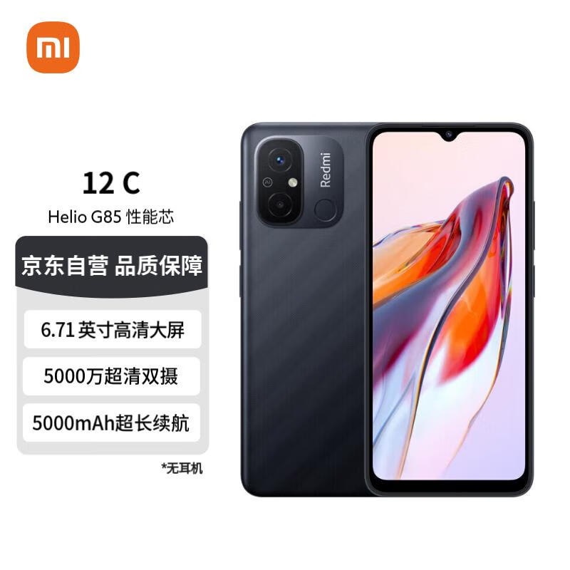 小米红米 12C Helio G85 性能芯 5000万高清双摄 4GB+64GB 暗影黑 小米红米手机 老人机 老人手机价格:495.00元!