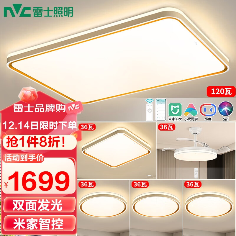 雷士(NVC)LED吸顶灯 北欧现代简约客厅卧室餐厅灯饰 AI语音智能灯具 柠梦H价格:2123.00元!