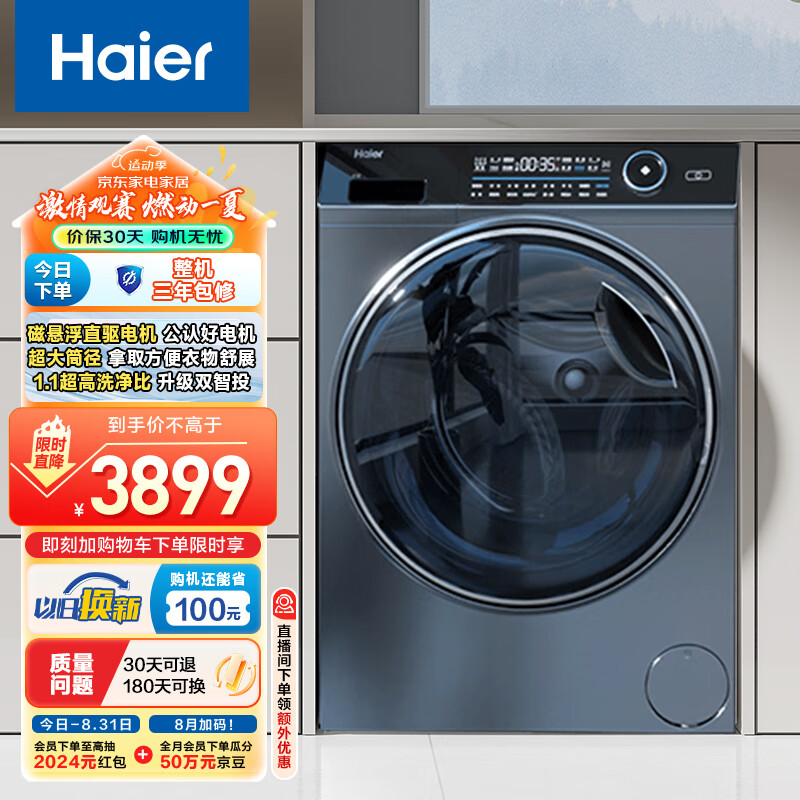 海尔(Haier)海尔(Haier)滚筒洗衣机全自动 10公斤大容量 超薄【直驱XQG100-BD14176LU1】双智投 以旧换新价格:3399.00元!