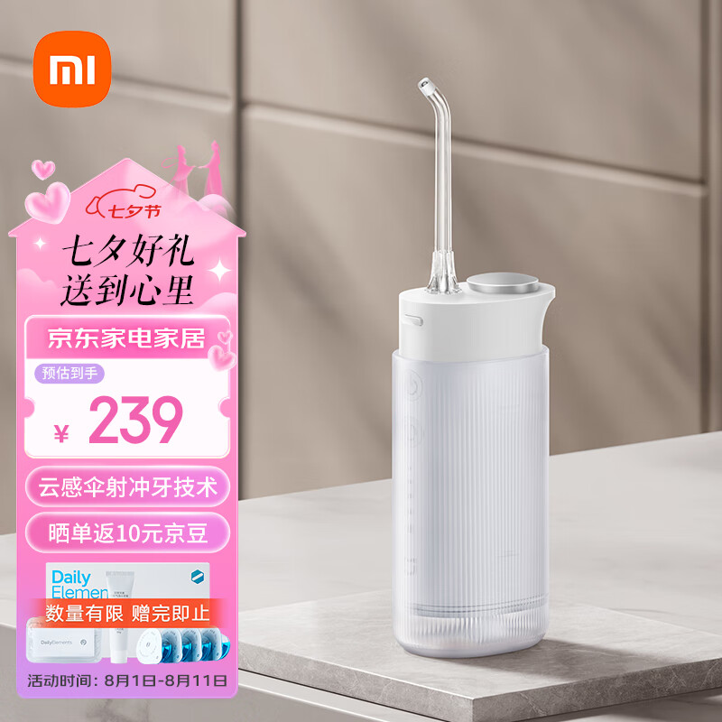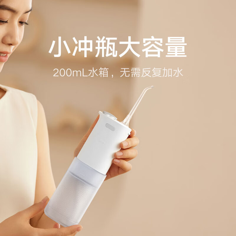 米家【七夕情人节礼物】小米便携式冲牙器洗牙器水牙线 F400白色 云感伞射机身收纳喷嘴4挡冲牙模式价格:239.00元!