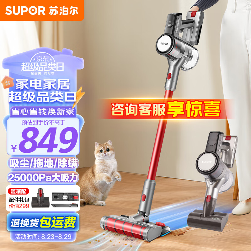 苏泊尔 SUPOR 手持无线吸尘器家用洗地机除螨拖地机吸拖一体机 宠物家庭适用VCS63X-C11价格:849.00元!