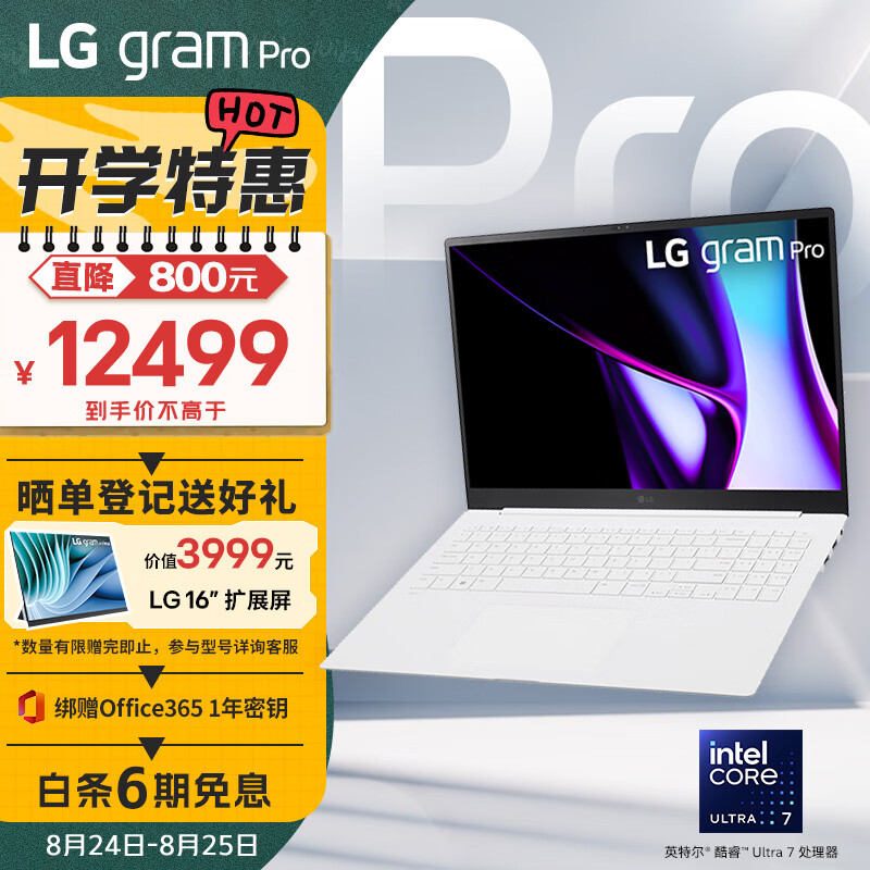LGgram Pro 2024 evo Ultra7 16英寸AI轻薄本2.8K OLED屏长续航笔记本电脑(32G 1TB 白)游戏AI PC价格:13299.00元!