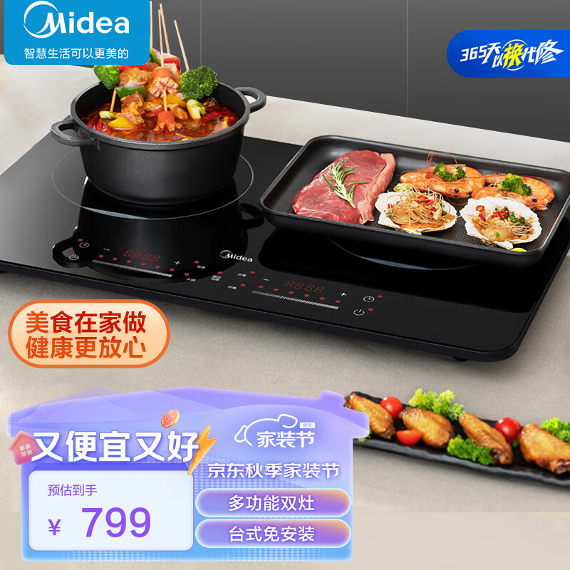 美的(Midea)双灶电磁炉 电磁灶 家用大功率3500W防护双头灶 轻薄机身 定时预约多功能MC-DZ35W5-111价格:799.00元!