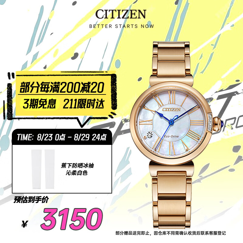 西铁城(CITIZEN)手表女日韩表小铃花光动能贝母盘钢带时尚送礼物EM1063-89D价格:3500.00元!