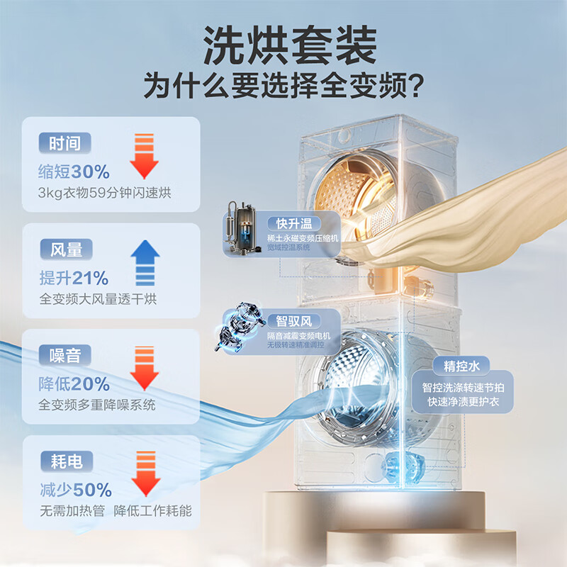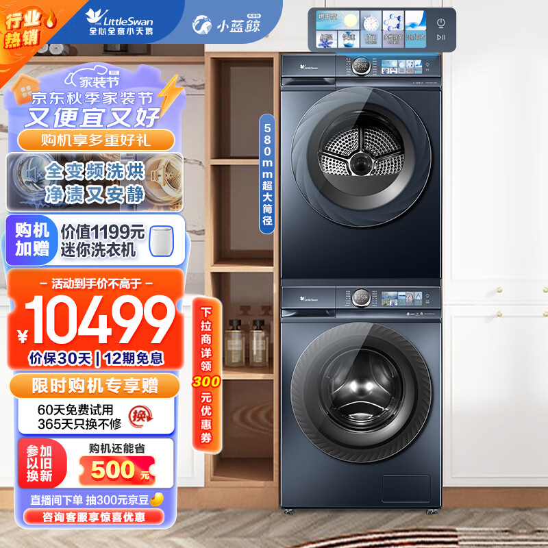 小天鹅(LittleSwan)洗烘套装 10KG滚筒洗衣机+热泵烘干机 超薄全嵌【小蓝鲸青春MAX全变频】TG100V86PLUS+88PLUSMAX价格:10199.00元!