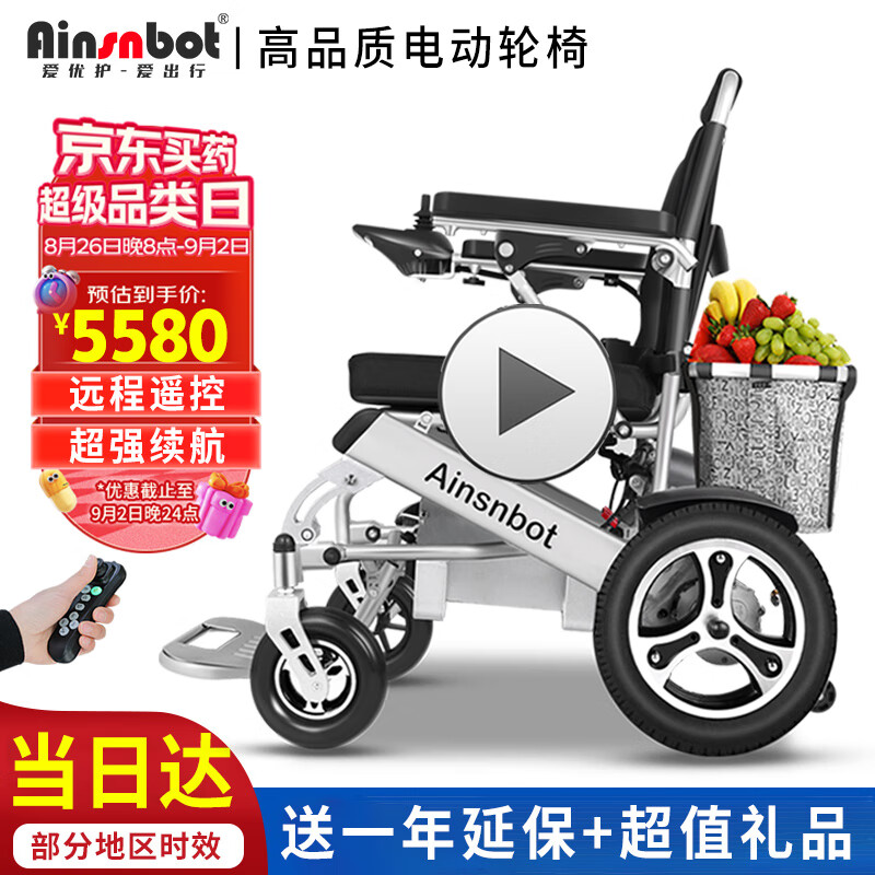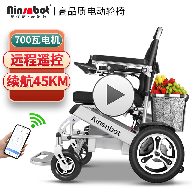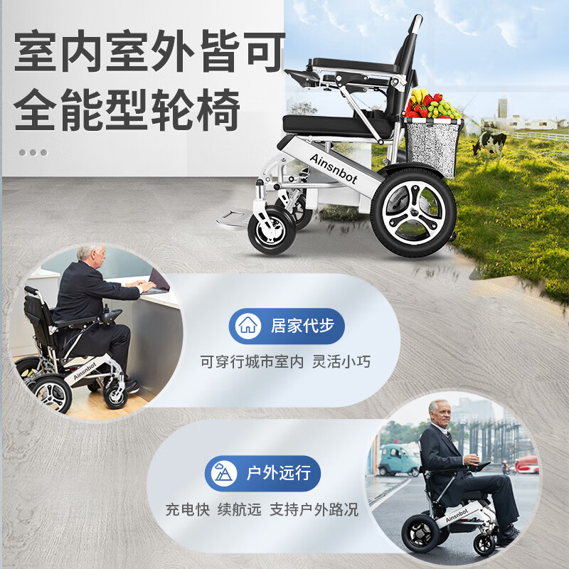 Ainsnbot 电动轮椅车 智能遥控全自动老年人残疾人家用出行轻便可折叠旅行老人越野轮椅车双人 32A锂电池价格:5580.00元!