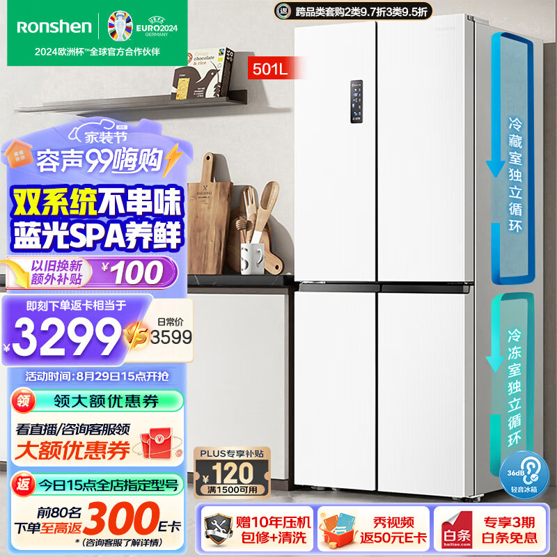 容声(Ronshen)501升十字双对开四开多门电冰箱家用一级能效风冷无霜节能大容量变频双循环BCD-501WD18FP以旧换新价格:3899.00元!