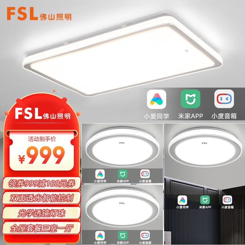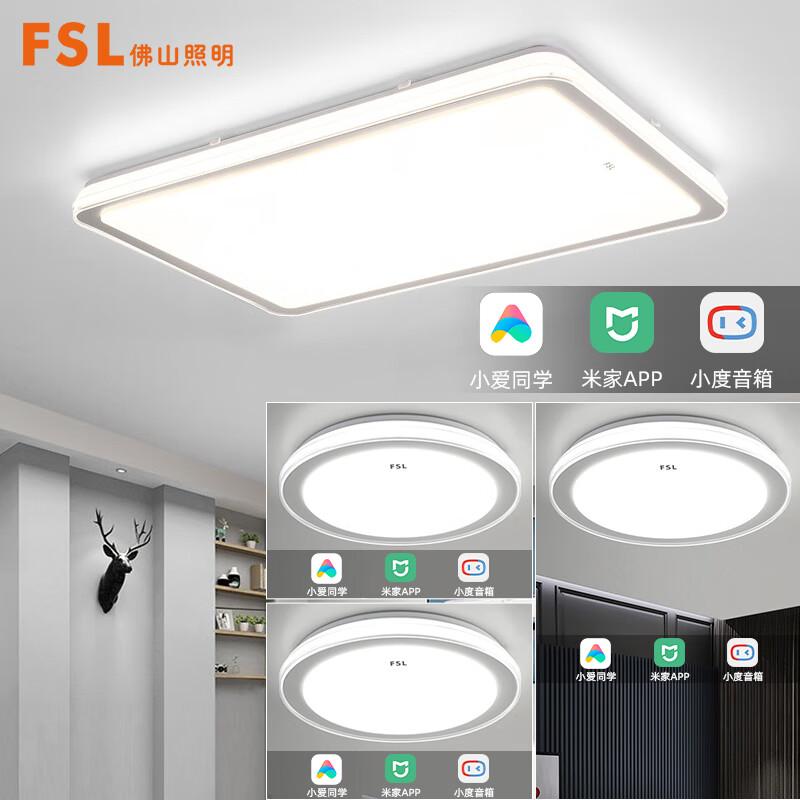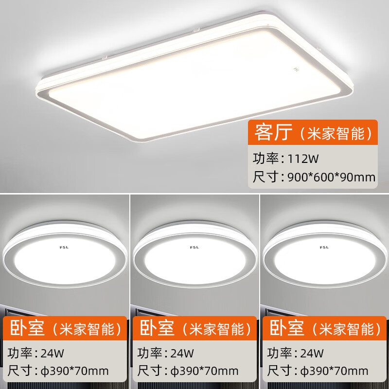 FSL佛山照明LED吸顶灯智能灯具套餐客厅卧室书房灯调色三室一厅54064价格:1099.00元!