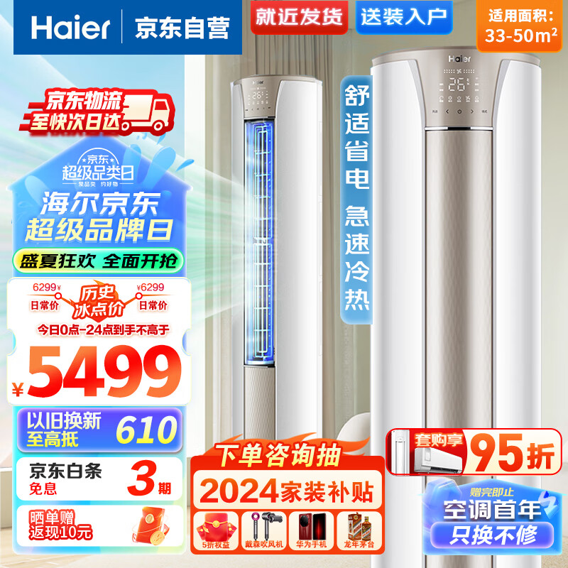 海尔(Haier)立柜式空调3匹柜机静悦新一级能效变频冷暖急速制热客厅家用自清洁空调立式以旧换新价格:5499.00元!